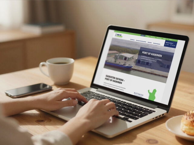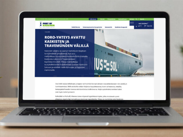 3D-työn jälkeen uudistettiin Kaskisten sataman verkkosivusto. Sivuston rakenne ja visuaalinen ilme suunniteltiin alusta alkaen tukemaan sataman digitalisaatiota ja viestimään sen roolista meri- ja maaliikenteen kohtaamispaikkana.
